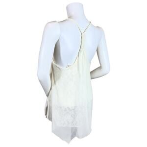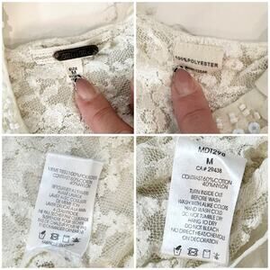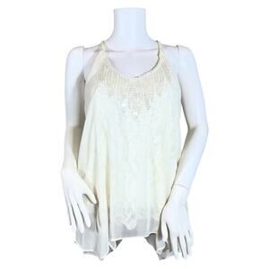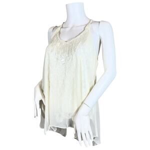 Miss Me Double Layer Lace Sequin Cream Top SZ M $89