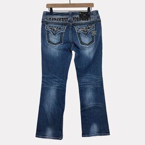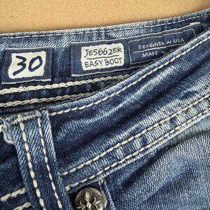 Miss Me Easy Boot Bling Flap Pocket Jeans Womens 30 Medium Wash Blue JE566ZER