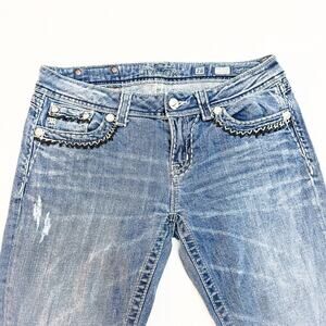 Miss Me Easy Boot Bootcut Denim Jean Fleur De Lis Size 28