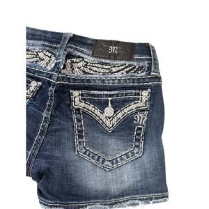 Miss Me Easy Shorts Womens Size 25 Denim Mid Rise 3" Inseam Embellished Wings