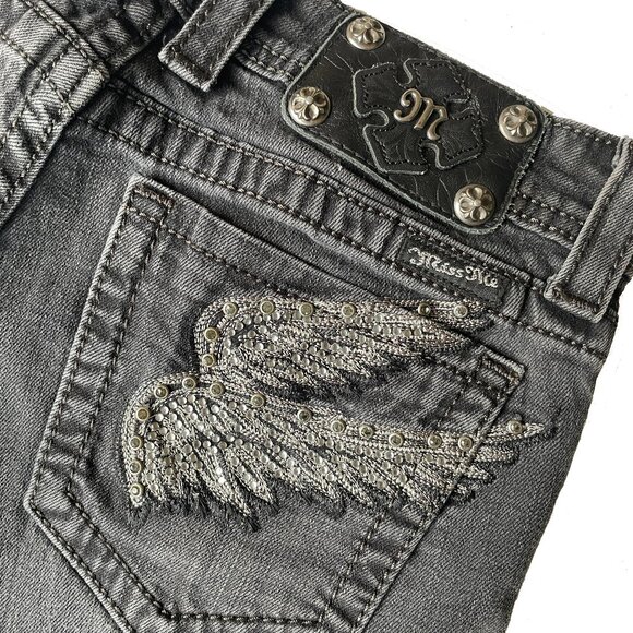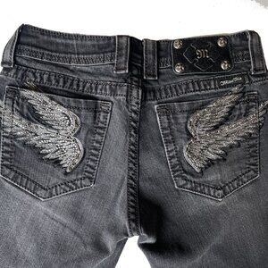 Miss Me Embellished Embroidered Wings Black Faded Skinny Jeans 29 x 31