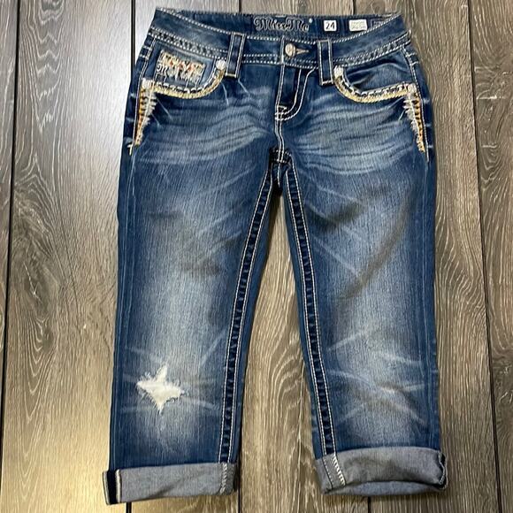Miss Me Embellished Signature Cuffed Capri Women's Size 24