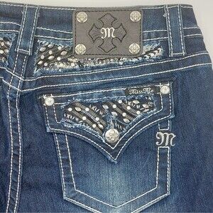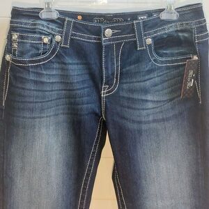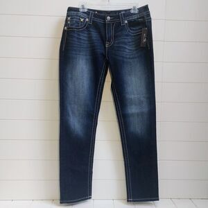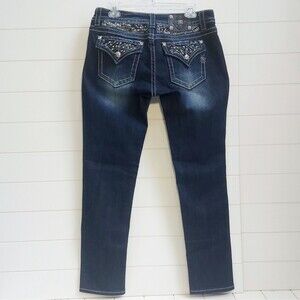 Miss Me Embellished Signature Skinny Jeans Women's Size 32x31 Blue Crystals NEW!