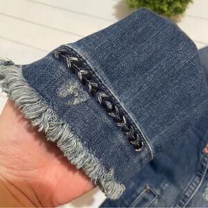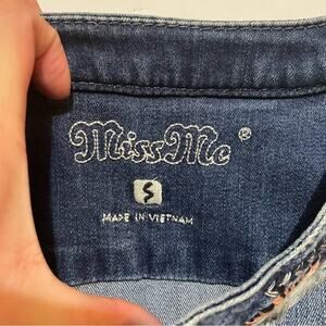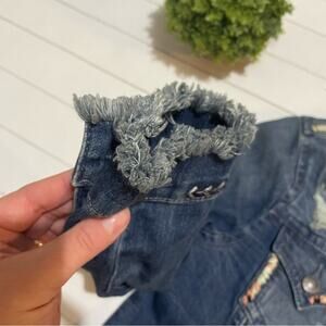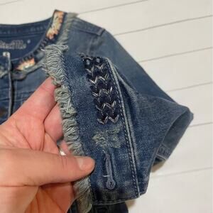 Miss Me Embroidered Distressed Medium Wash Denim Jean Jacket Women’s Size Small
