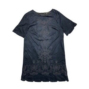 Miss Me Embroidered Scalloped Microfiber Shift Dress Navy Blue Womens Size M (A4)
