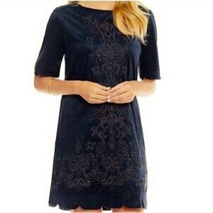 Miss Me Embroidered Scalloped Microfiber Shift Dress Navy Blue Women’s Size M
