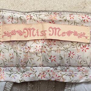 A pair of chic Miss Me size 28 Bermuda shorts, crafted from a soft 55% linen, 42% cotton, and 2% spandex, with intricate embroidery, offers a stylish and breathable option for warm-weather wear.