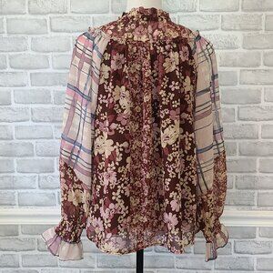 Miss Me Floral Balloon Sleeve Blouse Top Boho Western Coastal Cowgirl Sheer Sm
