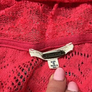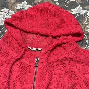Miss Me Full Zip Floral Lace Hoodie Size S Sequin Long Sleeve Pink Cozy Knit Y2K