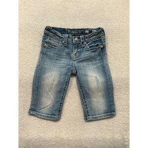 Miss Me Girls Bling Wing Flap Rhinestones Distressed Bermuda Shorts 12