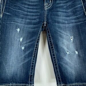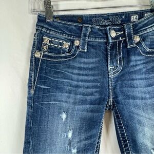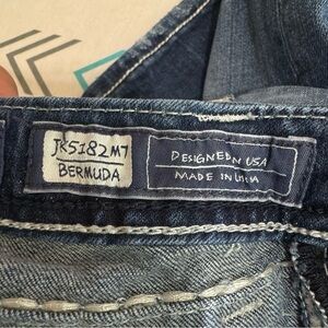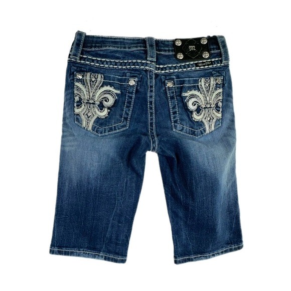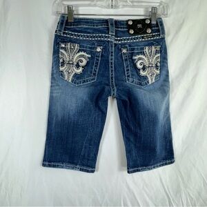 Miss Me Girl’s Fluer De Lis Pocket Design Rhinestone Bling Bermuda Jean Shorts