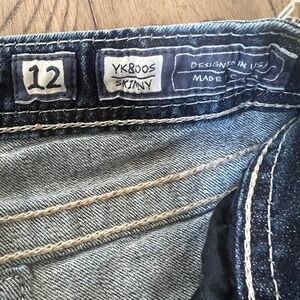 Keywords: Miss Me, Girls Jeans, Skinny Jeans, Size 12, Dark Wash Denim, Embellished Pockets, Rhinestones, Studs, Designer Jeans, Girls Fashion, Denim Jeans, Miss Me Girls, YK8005, Kids Jeans