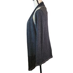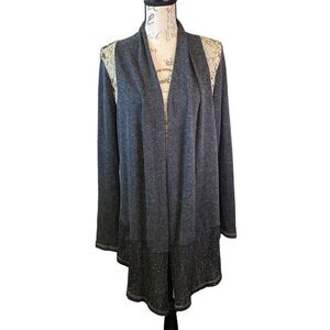 Miss Me Gray Waterfall Lace Shoulders Fitted back Cardigan Sweater S