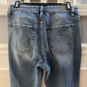 Excellent pair of (New Without Tags) Miss Me button fly high rise skinny distressed jeans size 28. These have been washed and worn once. Raw hem . Perfect!!