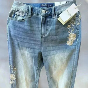 Miss Me High-Rise Flare w Floral Embroidery #H38519H, size 25, 34” inseam, NWT