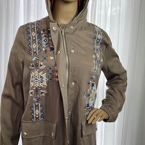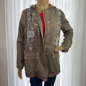 Miss Me Hooded Shirt Jacket with Embroidery and Embellishment Size Small