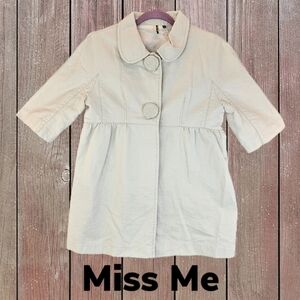 Miss Me Ivory Textured All Cotton Lightweight Lined Spring Summer Jacket Sz M