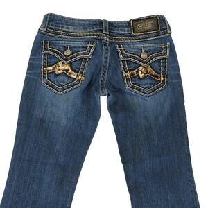 Miss Me JD1047B Boot Cut Jeans Embellished Back Pockets Women's 27 White Stitch