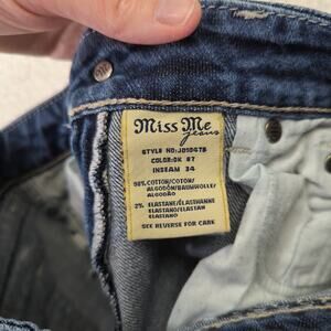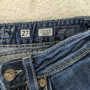 Miss Me JD1047B Boot Cut Jeans Embroidered Embellished Back Flap Pockets Women's Size 27 Hemmed White Stitch