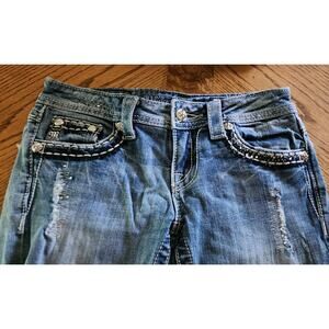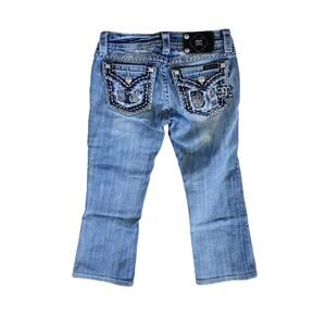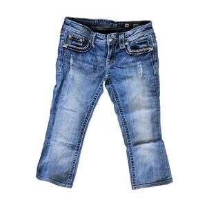 Miss Me JE5864BR rhinestones studs embroidered distressed Boot Capri size 26 EU