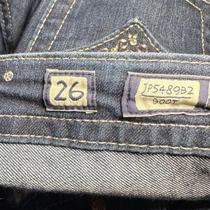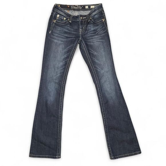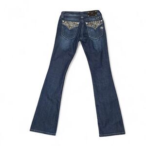 Miss Me JP5489B2 bootcut dark wash low rise embellished flap pocket jeans Sz 26