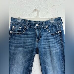 Miss Me JP6220B Dark Wash Boot Cut Blue Jeans with Studded Fleur de lis, Size 30
