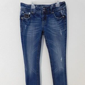 Miss Me Jean 29 Women Easy Boot Distressed Low Rise Flap Pocket Bling JE5002E40L