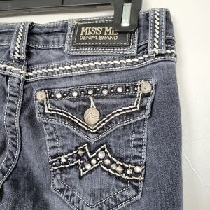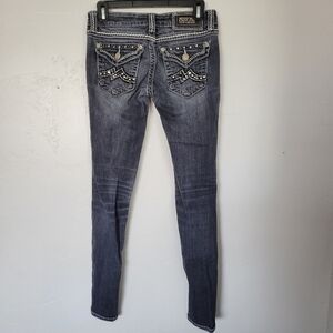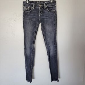 Miss Me Jeans 26 Skinny Dark Wash Denim Embroidered Flap Pockets Embellished