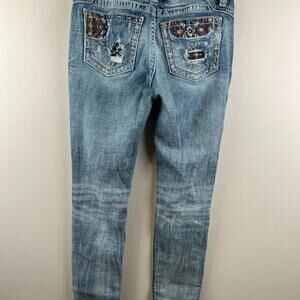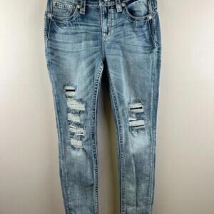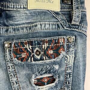 Miss Me Jeans 28 Mid Rise Ankle Skinny Distressed Embroidered Aztec Pockets WMNS