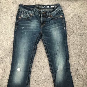 I’m perfect condition. Only worn once. Size 25 mid-rise boot cut.