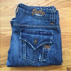 Adorable Miss Mes with cute pockets! They're a little too snug on me so I've only worn them twice. The front button was broken when I bought them but can easily be pinned (what I do) or sewed back on! That's why these are so cheap 😊