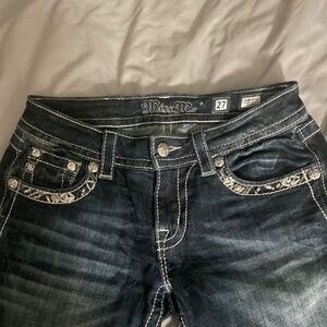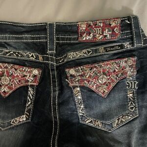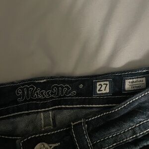 y2k, skinny, embroidered pattern on pockets, sequined, size 27, distressed, super cute