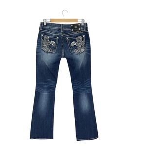 Miss Me Jeans Bootcut Size 28/6 Fleur De Lis Blue Denim Studded Sequins EUC