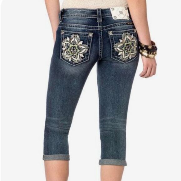 Miss Me Jeans Capri Style Size 26 Style JP7593P Cuffed Denim Cropped Ankle