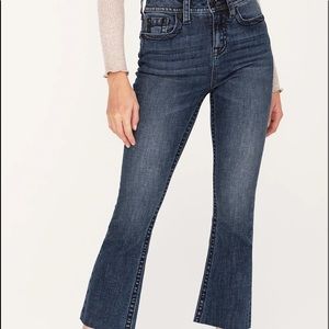 Enjoy this pair of High rise cropped bootcut jeans featuring whiskering, fading, contrast stitching and a 5-pocket design.