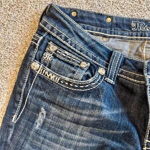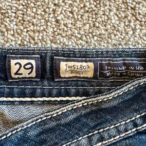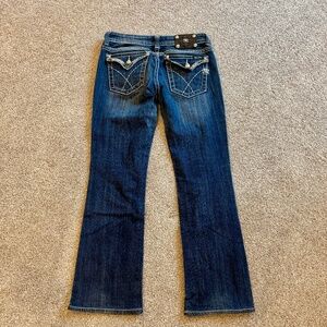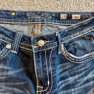 Miss Me Jeans. Size 29, EUC, Bootcut with low rise and regular wash. Bling and flap pockets with white stitching. 31" inseam.