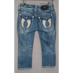Miss Me Jeans Embellished 28 Blue Denim Angel Wings Bling Capri Flap Pockets