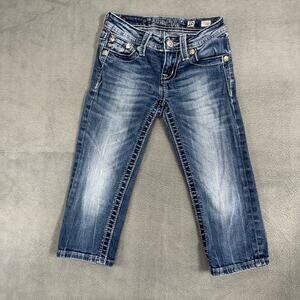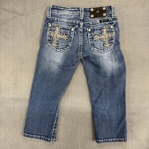 Miss Me Jeans GIRLS Capri Sequins Bling Rhinestones Cross Embroidery Fade 10