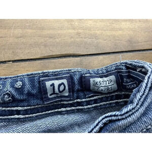 Miss Me Jeans Girls 10 Capri Medium Wash Light Fade JK5772P Cross Stitched
