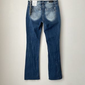 Miss Me Jeans Heaven Western Star Patch Raw Hem Mid Rise Boot Blue 29