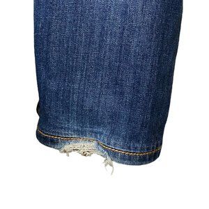 These jeans are in great pre-owned condition. They have some minor wear on the back of the cuffs, but it fits in with the distressing on the front, so overall, they look great.
