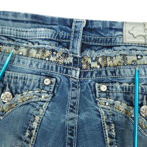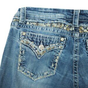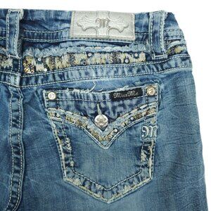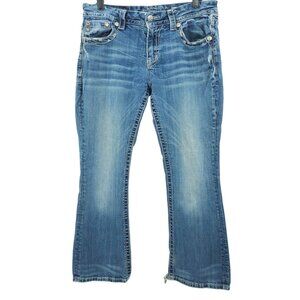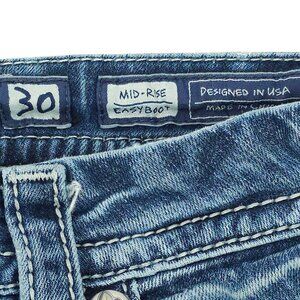 Miss Me Jeans Mid Rise Easy Boot Cut Faux Flap Size 30x29 READ Stretch Med Wash