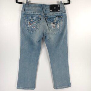 Miss Me Jeans SIGNATURE CUFFED CAPRI Crop Distressed Embroidered JP8229P Size 26