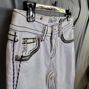 Miss Me Jeans Signature Cropped Size 28 White Black Stitching