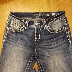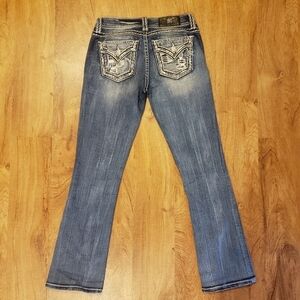Miss Me Jeans Signature Slim Boot Women's 27 Waist Patchwork Pockets Bling EUC