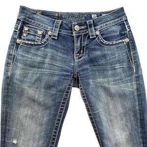 Miss Me Jeans Size 25 Signature Low Rise Slim Boot Flap Pocket Rhinestones