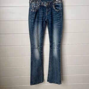 Miss Me Jeans Size: 26 Signature Bootcut Tri-color Rhinestone Gems Western Boho Jeans!