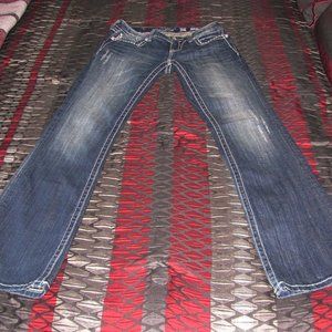 Miss Me Jeans Size 26 x 33 Easy Boot Low Rise Denim Studs chains sequins