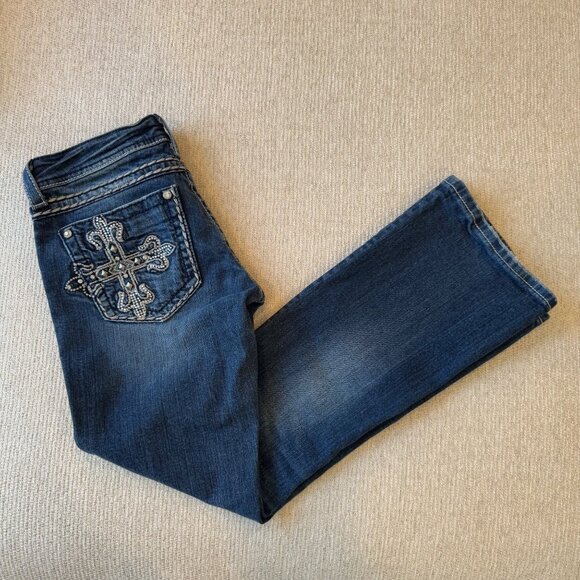 Miss Me Jeans Size 28 Cross Embroidered Rhinestones Boot Cut