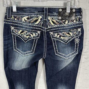 Miss Me Jeans Sz 27 Rhinestone Sequin Signature Crop Leg Blue Embroidered Bling